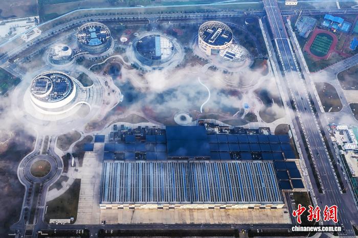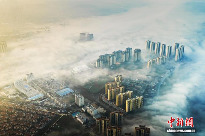 图为好城市呈现仄淌雾景不雅。曹礼达 摄